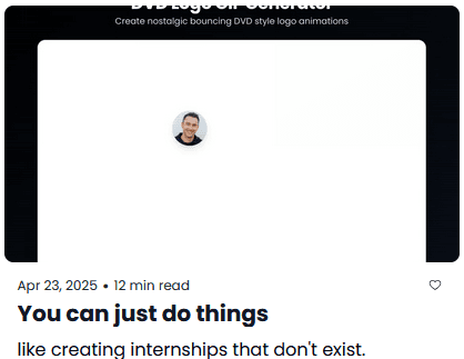 16th of Feb 2026 - I thought I would do more networking and discovery within myBlueprint. I came across Damian M's newsletter and I read the article "You can just do things"