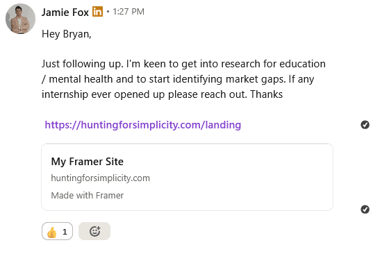It showcases a bit of storytelling and displays how I'm willing to put myself out there to reach my goals. This helps to show you my enthusiasm.