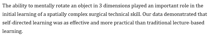 With specific focus to the example of a student's ability to tie a knot, one can see how this skill could be useful in a profession where one is expected to use their hands in a technically, complex environment, pointing to surgeons, biomedical engineers or game designers prototyping tactile interfaces.