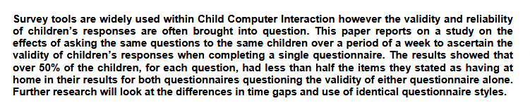 Whilst I didn't get into the thick of it, there was still evidence that backed up that kids aren't the most reliable when it comes to written surveys.